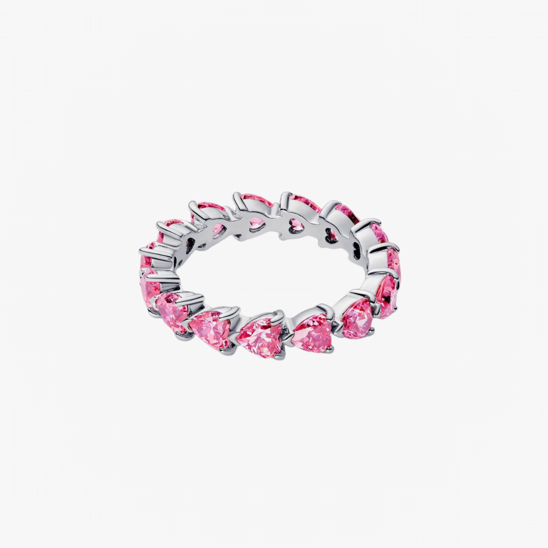 Maak een verbluffende liefdesverklaring met de Eeuwige Liefdesring met een rij harten. De hartvormige stenen en V-vormige kralen wisselen elkaar af en creëren zo een sprankelende en eigentijdse versie van de klassieke hartzetting.